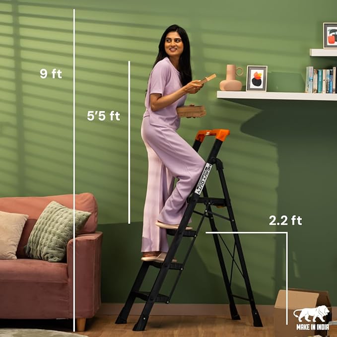 Upgrade your home and workspace safety with the Bonkaso Alloy Steel Climb Master Ladder. Built with a heavy-duty alloy steel frame, this 4-step foldable ladder is designed for durability, stability, and convenience. Whether for indoor chores or outdoor tasks, its anti-slip steps and advanced locking system ensure maximum safety with every climb.