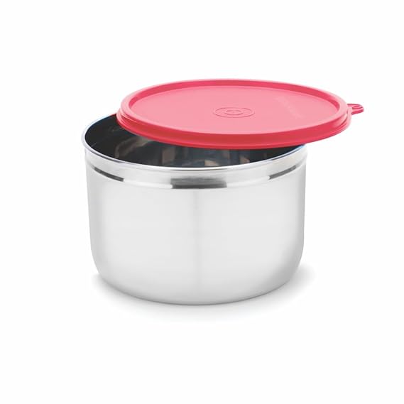 - Material Description: Dimension : 14.5cm x 14.5cm x 9cm | Capacity : 1.1 Ltr | The Signoraware Store Well Steel Container is constructed from durable stainless steel. This material is known for its strength, corrosion resistance, and food safety. It ensures the container can withstand daily use and keeps your stored food fresh and free from unwanted flavors.