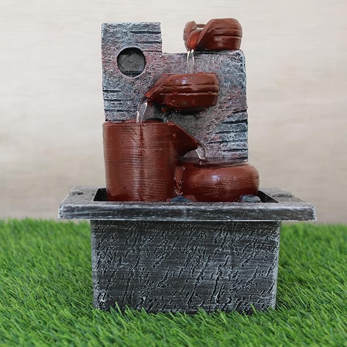 Add a calming touch to any space with this multicolour resin tabletop water fountain. Perfect for indoor or outdoor use, it enhances living rooms, bedrooms, gardens, and halls while serving as a stylish decor piece or thoughtful gift. Compact size: 20.3 x 15.2 cm.