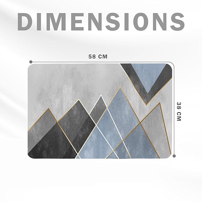 Its modern geometric blue design blends perfectly with any interior — ideal for bathrooms, kitchens, entrances, and offices. Built for everyday use, the mat is lightweight, washable, and quick to dry, offering both functionality and elegance.
